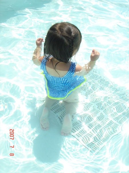 擦了防晒油或拿出藍色的游泳尿布就會興奮的知道要去游泳﹐
